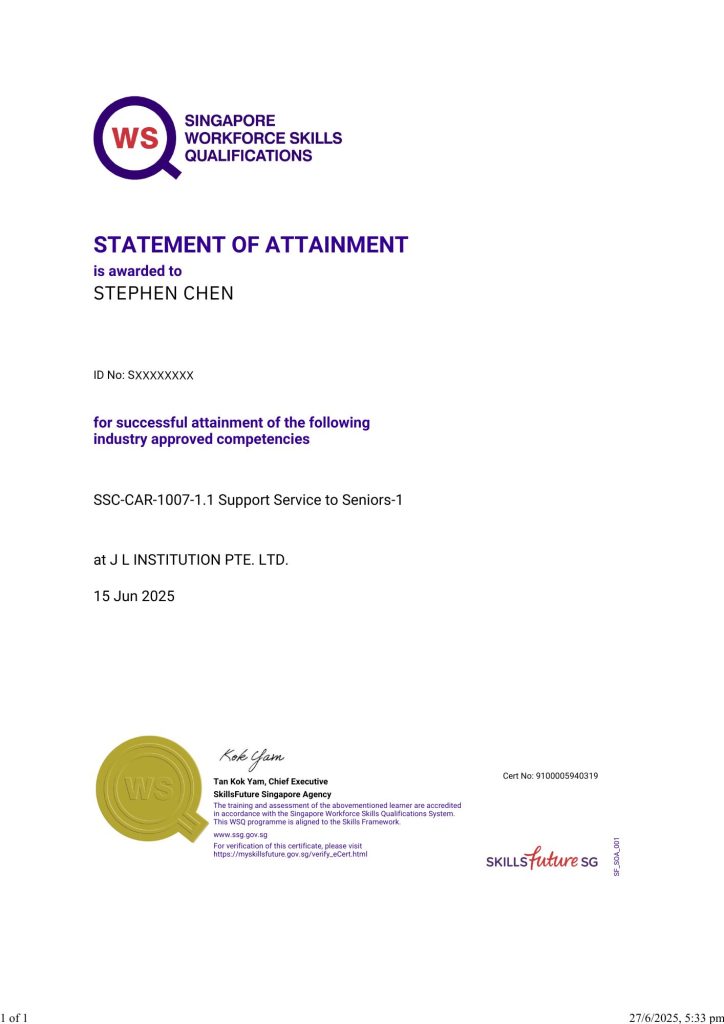 As Singapore’s population ages, there is an increasing need for professionals who can care for seniors with respect, patience, and compassion.